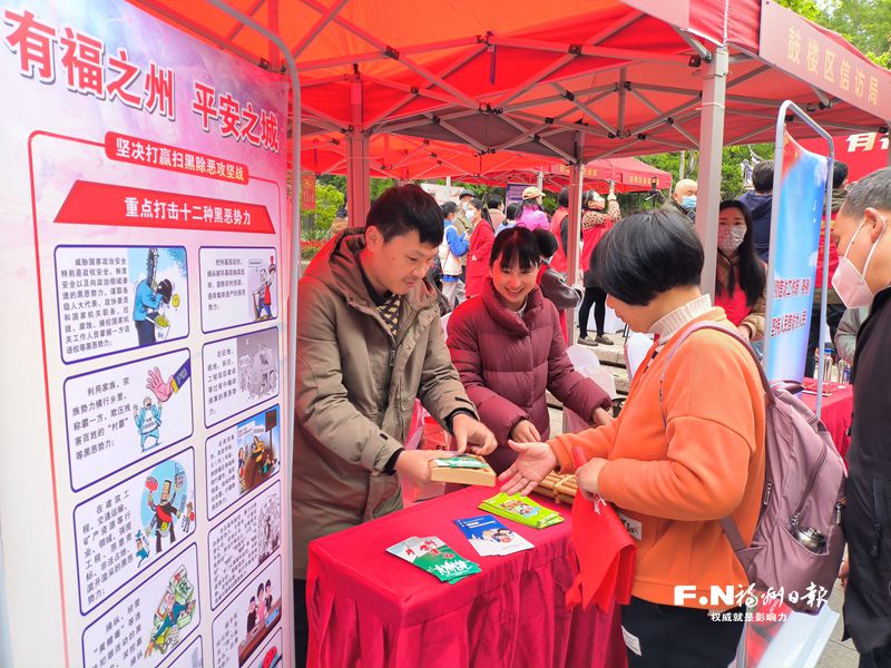 台上,一曲曲歌舞展现平安鼓楼的幸福感;台下,一个个咨询服务点增添市民的获得感。28日一早,屏山公园主广场人头攒动,热闹非凡,以“有福之州 平安鼓楼”为主题的平安建设宣传展演活动在这里举行,吸引了千余市民参与。活动由鼓楼区委政法委主办,鼓楼区委宣传部、区委统战部、区委文明办、鼓楼公安分局、区检察院、区法院、区司法局及十街镇等承办。