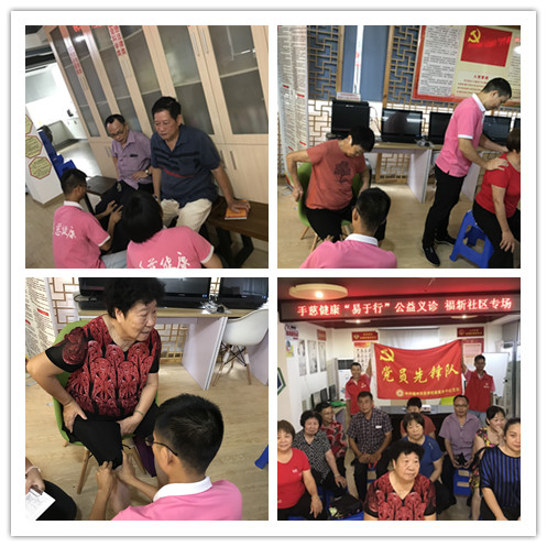 8月2日上午,福新社区联合手慈健康开展“易于行”公益义诊活动。活动开始后,医生细心地向前来需要按摩的居民进行了按摩治疗保养,并讲解了如何夏季如何防暑和按摩保养的好处的相关知识。此次活动共为15余人免费进行了按摩治疗和咨询。