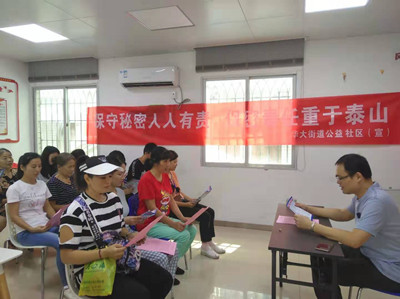 为深入开展保密法宣传教育工作,进一步弘扬保密法法治精神,强化辖区居民的保密工作能力,10月17日上午,公益社区特邀福建福晓律师事务所的郭律师在居家养老开展“保守秘密人人有责,保守责任重于泰山”普法知识讲座。