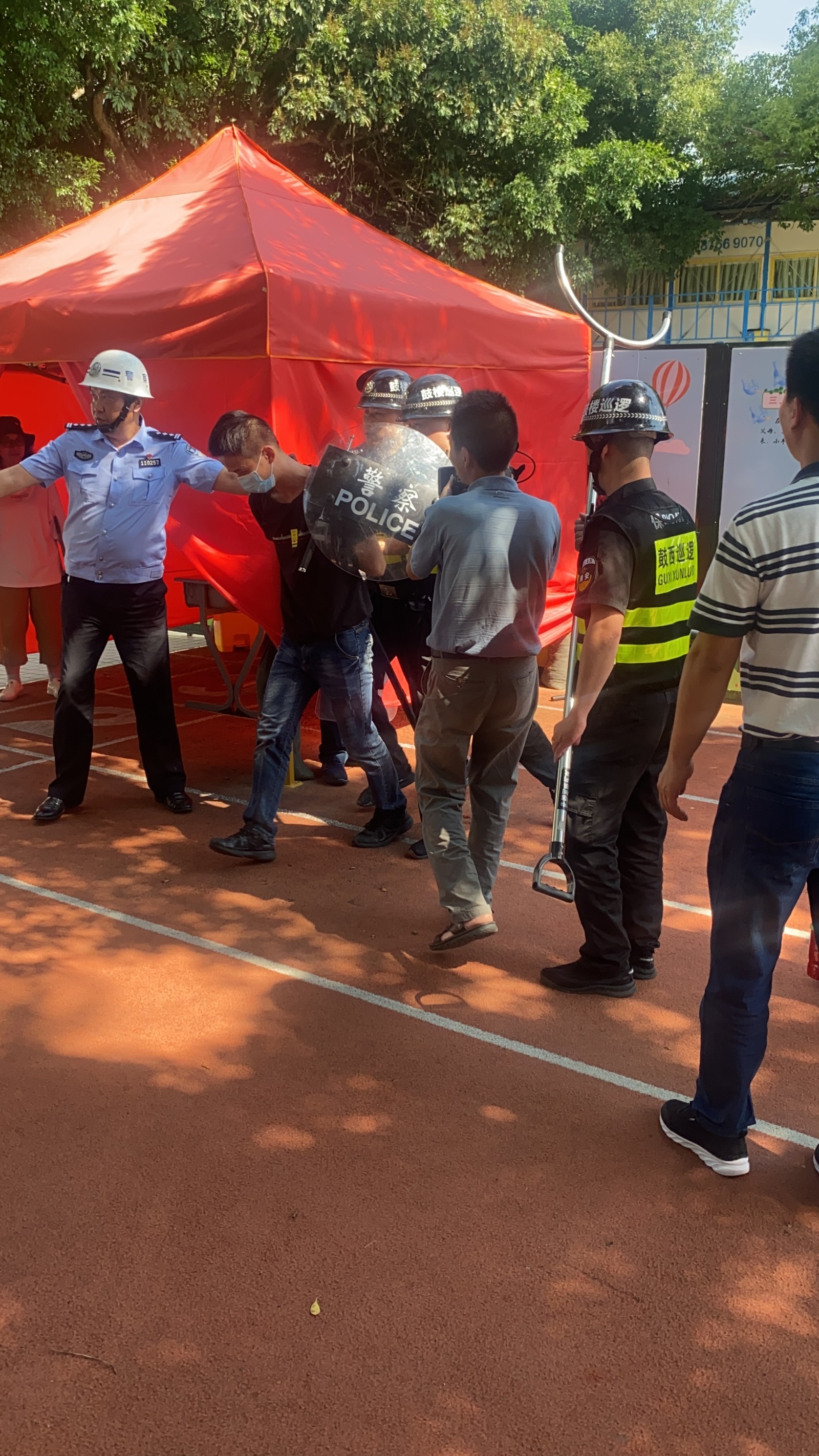 为了切实做好辖区的安全保卫工作,2021年5月14日下午,鼓西派出所联合梦山社区在湖滨小学开展辖区防暴反恐应急演练。全体队员着装整齐精神饱满,充分展示了梦山辖区内反恐应急队伍良好的精神风貌。通过演练切实增强学校工作人员,师生对各类突发事件的快速反应和应急处置能力,为维护辖区平安和谐提供保障。
