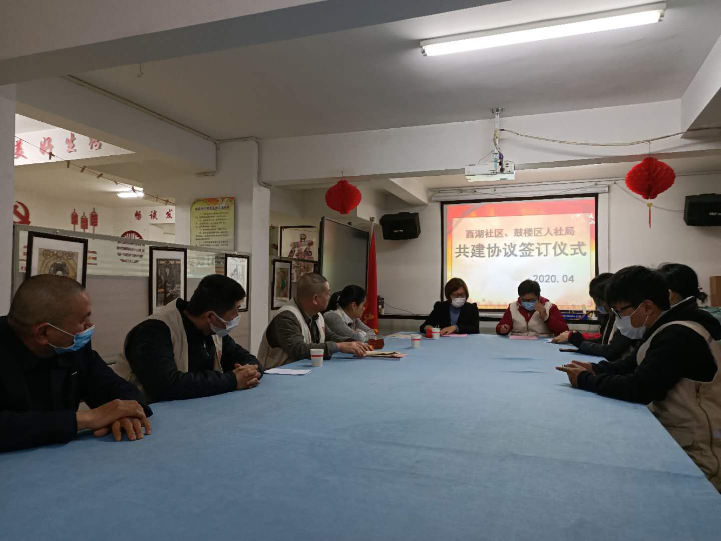 为了进一步落实上级党组织关于共驻共建、服务基层的部署要求,按照“条块结合、资源共享、优势互补、共驻共建”的原则,组织动员驻社区机关、企事业单位参与社区建设,共同打造“和谐文明平安社区”,2020年4月22日上午,福州市鼓楼区人力资源和社会保障局与西湖社区在社区会议室签订共驻共建协议。参加协议签订仪式的有鼓楼区人力资源和社会保障局局长、党支部书记李康同志和西湖社区党委书记陈素芬同志。签约会上,双方各自介绍所辖单位和社区情况,以及探讨未来合作开展活动事项,参加会议的还有鼓楼区人社局和社区的工作人员。