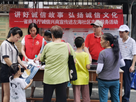 为大力培育和践行社会主义核心价值观,倡导诚实守信的社会风尚,推进诚信建设规范化、长效化。2021年7月20日左海社区新时代文明实践站联合省商务厅开展“讲好诚信故事 弘扬诚信文化”宣传活动。
