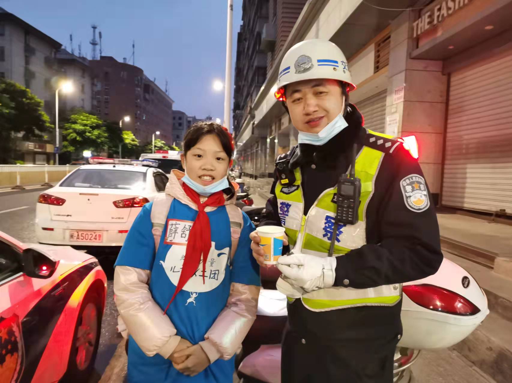 寒潮来袭,气温骤降。为给在寒风中坚持开展工作的一线工作者们送上一丝温暖,2022年1月1日凌晨4:00,鼓楼区团委、鼓东街道党工委、鼓东街道中山社区联合福州市鼓楼区海容青少年社会工作服务中心,组织蚂蚁力量福州儿童义工团、党员志愿者、党群工作者、青少年志愿者等100余人开展了“留榕过年,其乐融‘容’”暨“一杯姜茶暖人心”活动,为“城市美容师”城市劳动者、安防人员、交警等一线工作人员,送上一杯姜茶驱寒,并帮助清扫街道,让孩子们用“做公益”这种特殊的方式,学会尊重平凡而又伟大的环卫工,学会爱与付出,让公益改变童年,为全社会营造“人人热心公益,人人传递文明”的良好氛围,用这样特别而有爱的方式迎接新一年的到来。